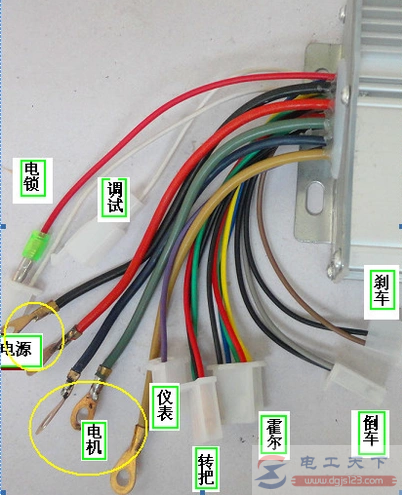 在对电动车进行维修时,搞不清楚电动车控制器的接线方法,为让人很头疼,这里分享一个电动车控制器的实物接线图,了解下电动车控制器的接线方式,对电动车上的几根线有个大概的了解。